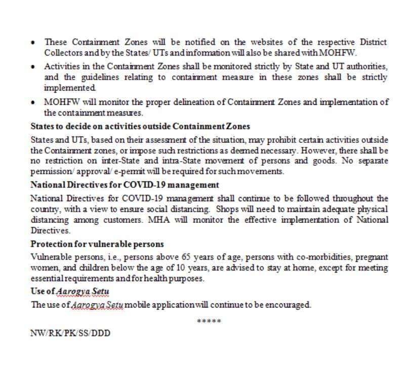 States and Union Territories have also been given a free hand by the MHA to decide on activities permitted outside containment zones based on their assessment of the COVID-19 situation